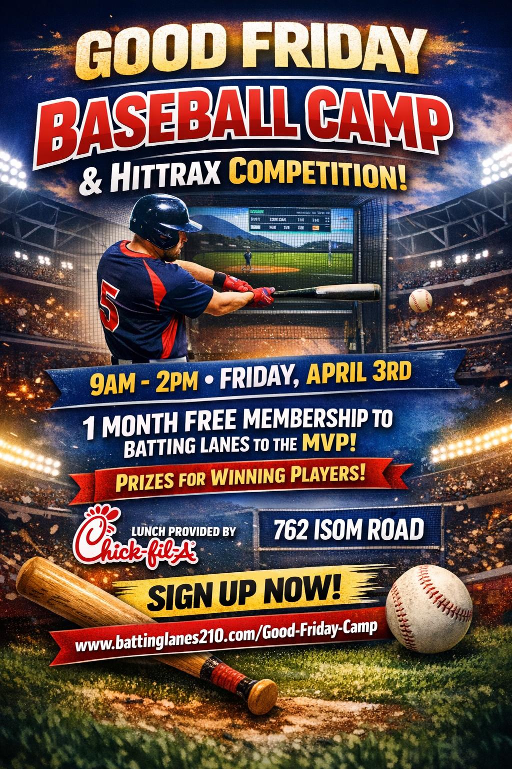 We will have a Camp including Hittrax Competition for Prizes on Friday April 3rd from 9am-2pm. Ages 7-12 years old