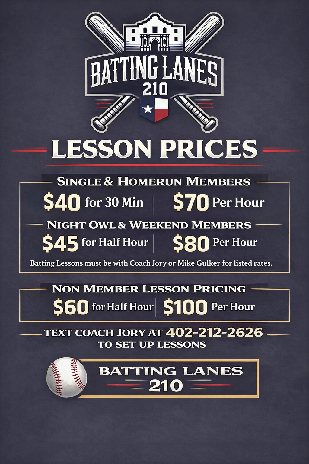 If you are looking for softball lessons send a text to the number listed on the flyer and we can set you up with an instructor as well.
