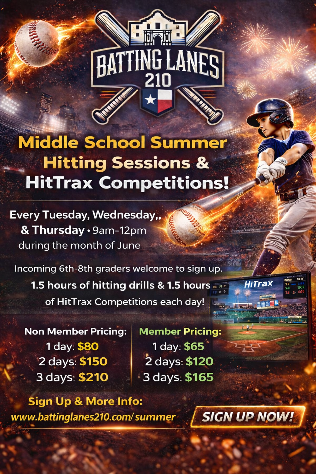 This Summer we will have hitting Sessions including Hittrax Competitions for kids ages 12-14 Tuesday, Wednesday, & Thursday from 9am-12pm throughout the month of June. Coach Jory Goldstrom will be the lead instructor with the potential for other coaches filling in some days as well.